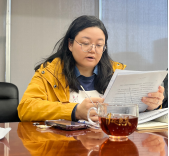 第三党支部纪检委员唐洁颖、支部党员苏铭湖、党支部宣传委员魏辉玲划分领学聚会内容